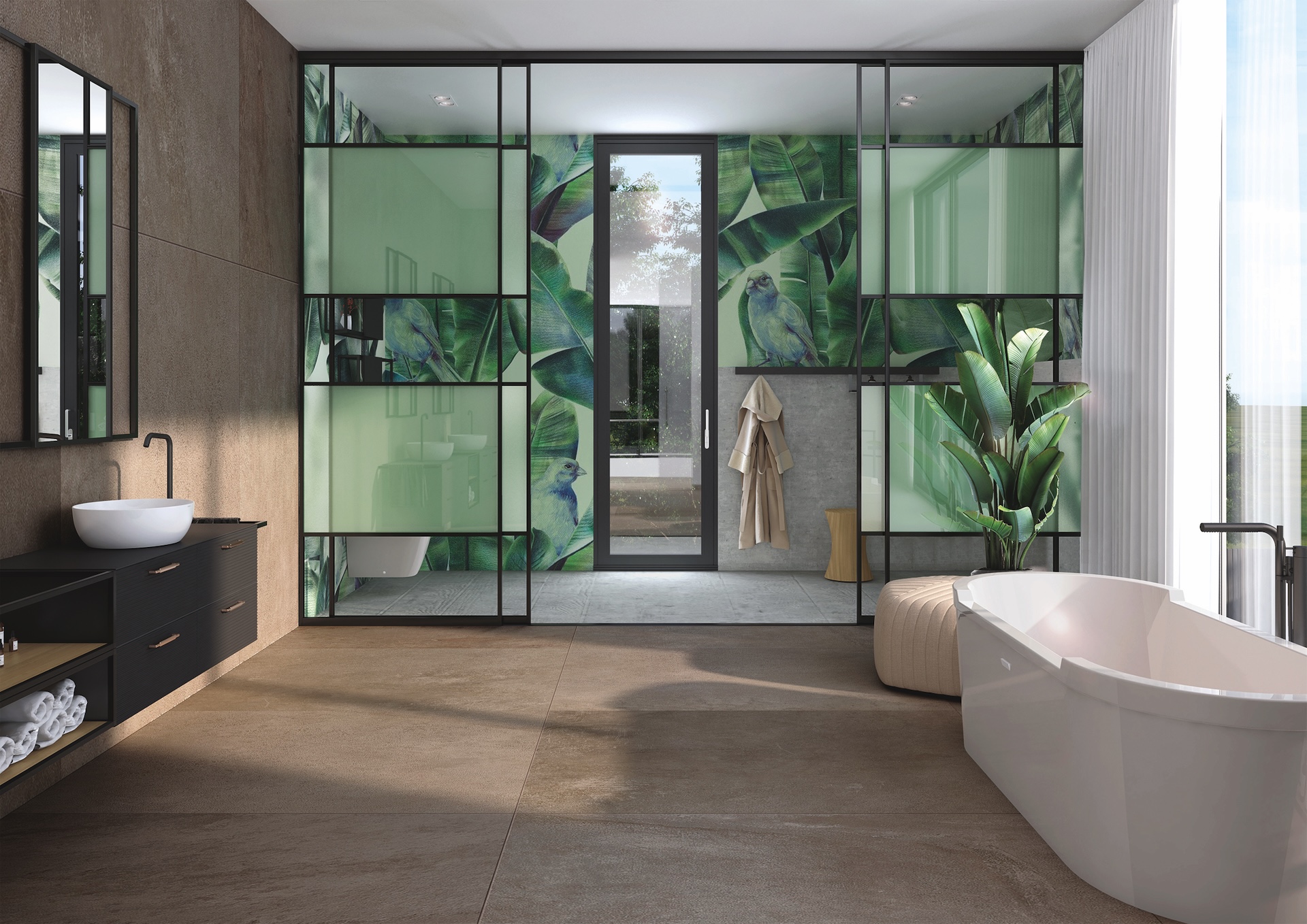 Hochwertige Materialien: Kombination aus Glas, Aluminium und textilen Elementen